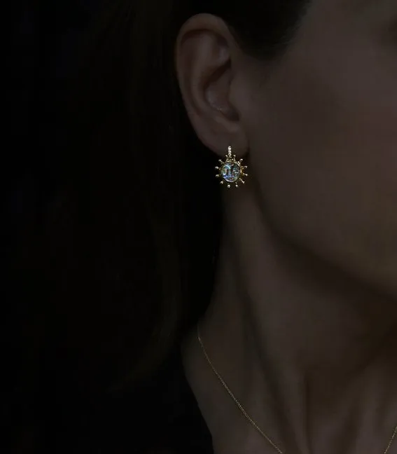 The design is playful, based on the sun and moon theme handmade in the UK in 18k gold with diamonds.